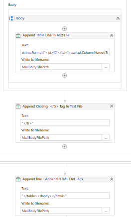 Finally, close all the opened html tags using AppendLine activity in the same text file.