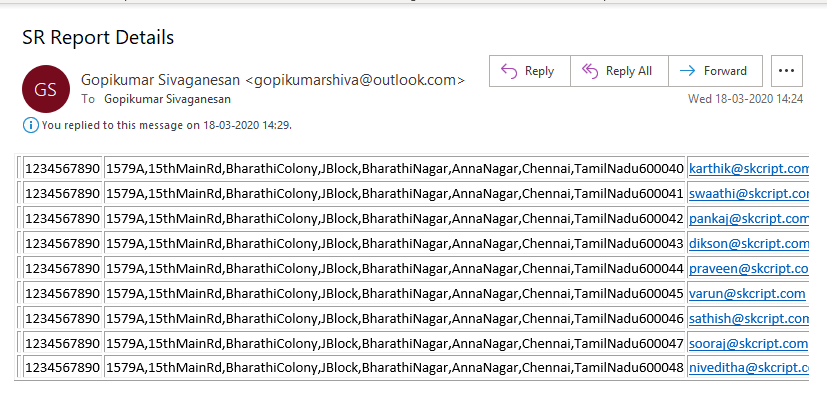Enter receiver mail id and subject of the mail like SR Details Report.