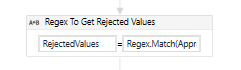 We have to extract the approved and rejected values by using RegularExpression (Regex). Here we have to get the values after “Approved” and before “and” text.