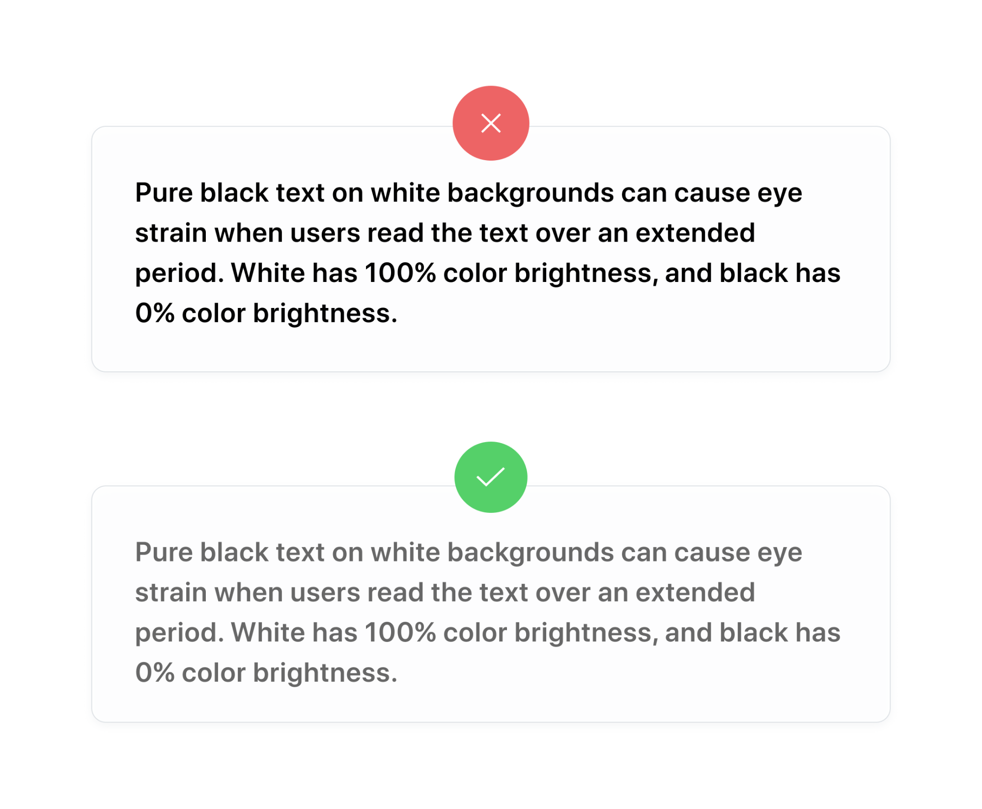Black is not a bad idea but darker grey in texts will make your design look more professional and improves your interface.