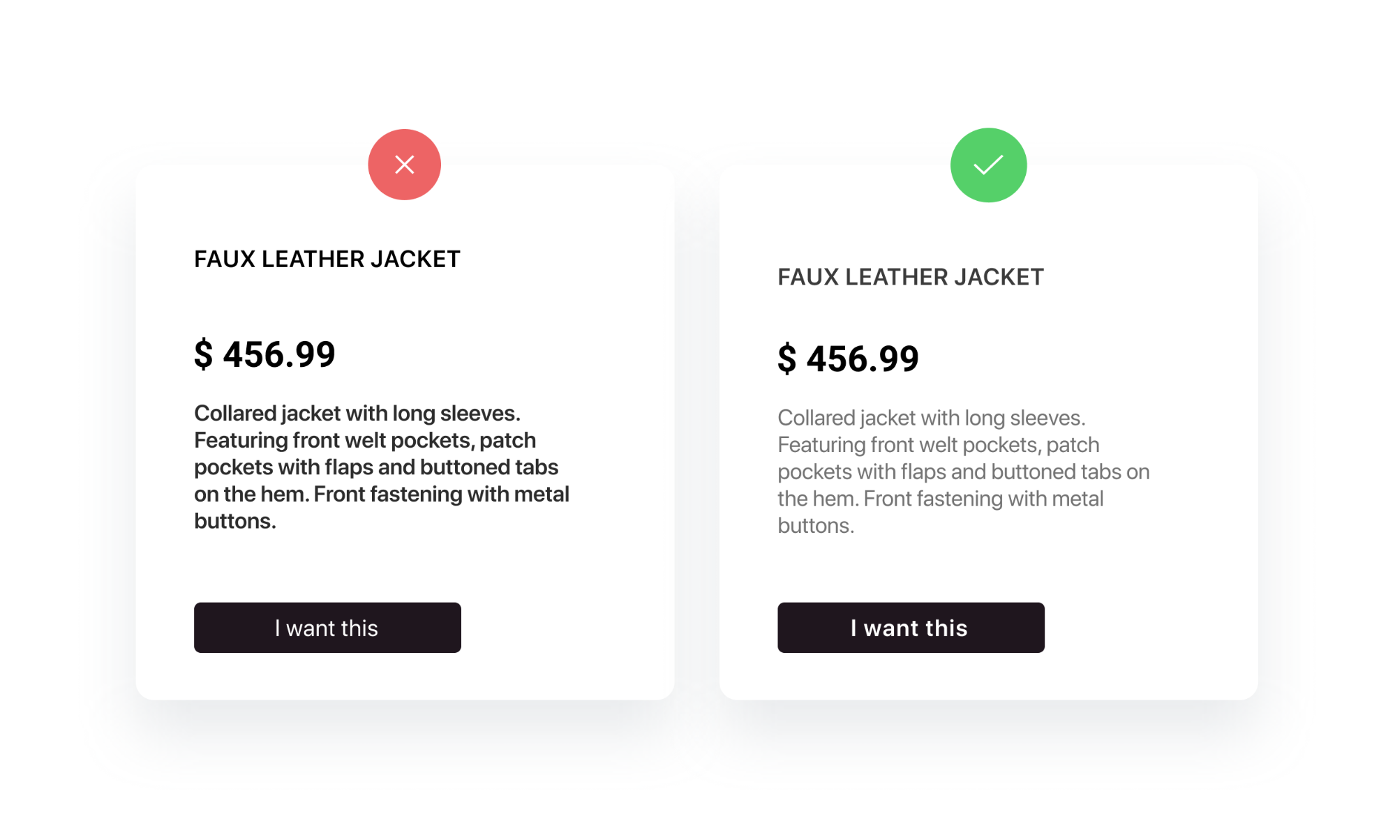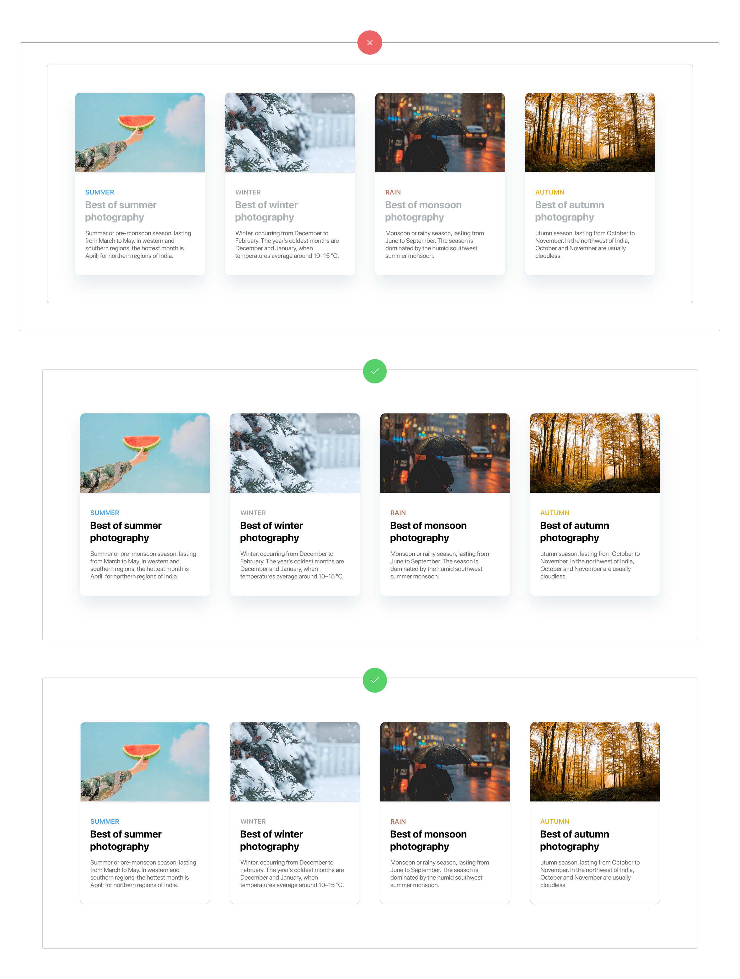 Hierarchy guides the viewer’s eyes. Highlight the important parts of the text like headings, links, and buttons bold. Don’t have more than 4 font sizes.