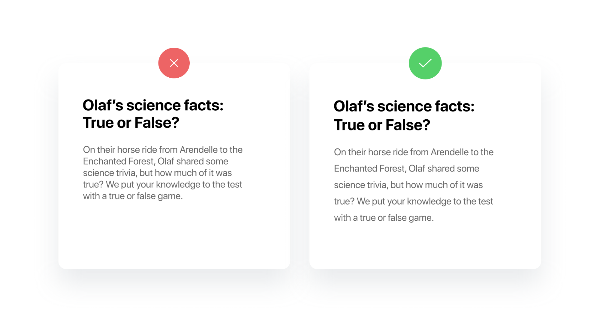 Avoid using the sample text lorem ipsum in your design even if it’s for demo purposes. Instead, use some decent and relatable content which will make your design look even more professional. Don’t worry about the content, there are a bunch of Figma and Sketch plugins that have got you covered. Use high-quality pictures, different headings, and preview texts of different lengths.