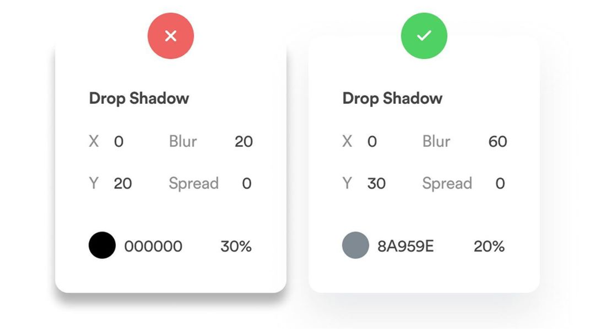 Again, don’t use full black. Go for a darker color instead, the darker shade of the surface on which it is cast.