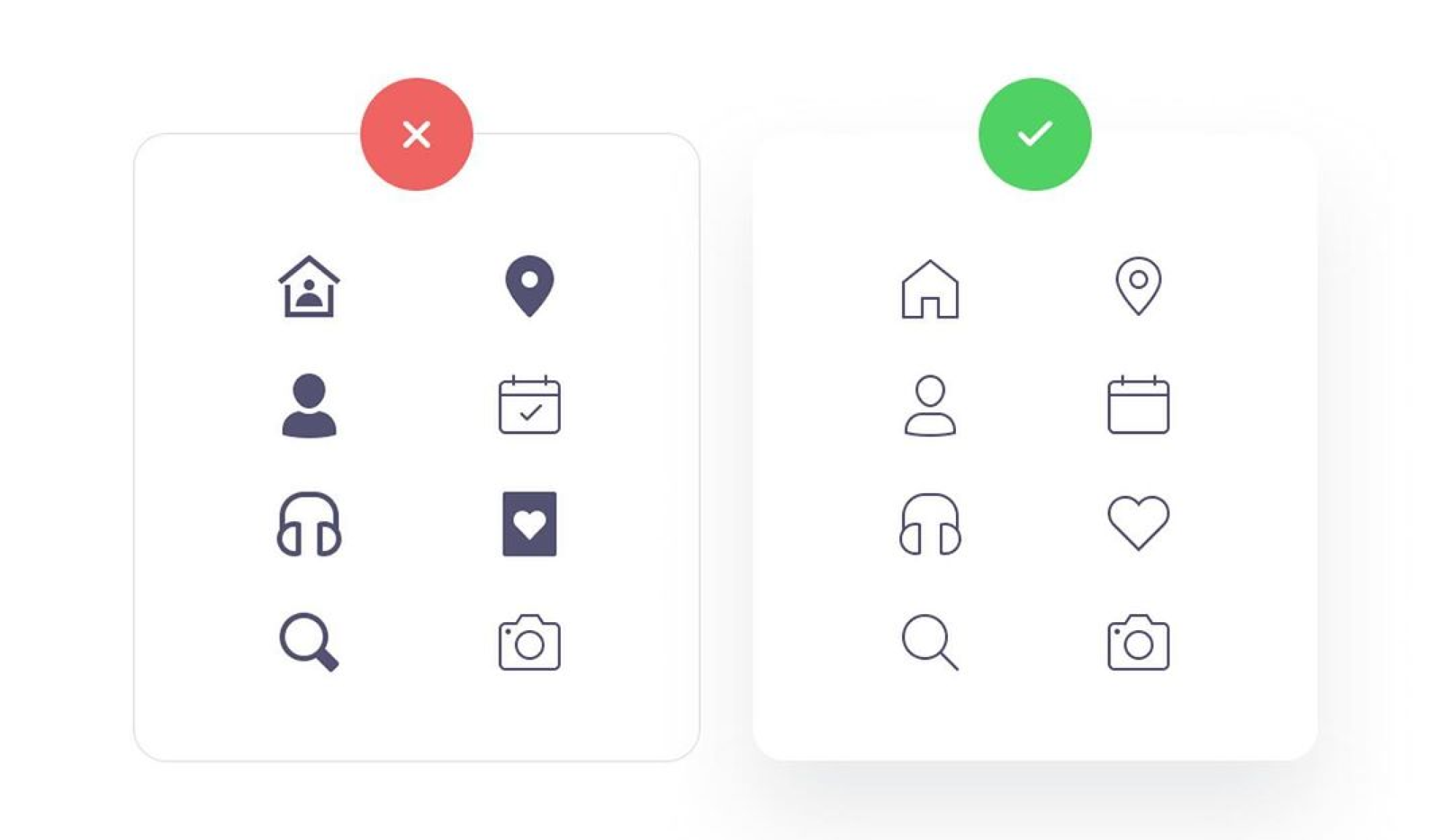 Consistency is the key to great design. Make sure you carry the same style of design with icons and buttons.