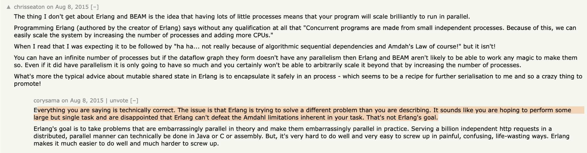 Erlang is a beautifully constructed and well throughout language. It’s truly passed the test of time and is so much more relevant in recent times.