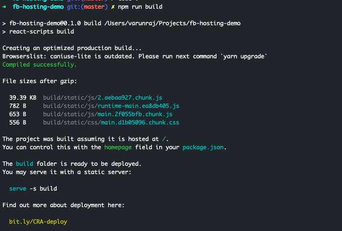 Executing this command will create a new react app inside the folder called fb-hosting-demo.