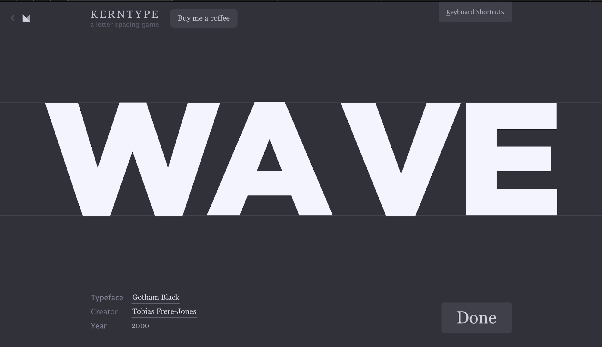 This typography game helps you learn to kern type. Your mission in this game is simple, achieve readable text by distributing the space between letters, and you get a score for that.
