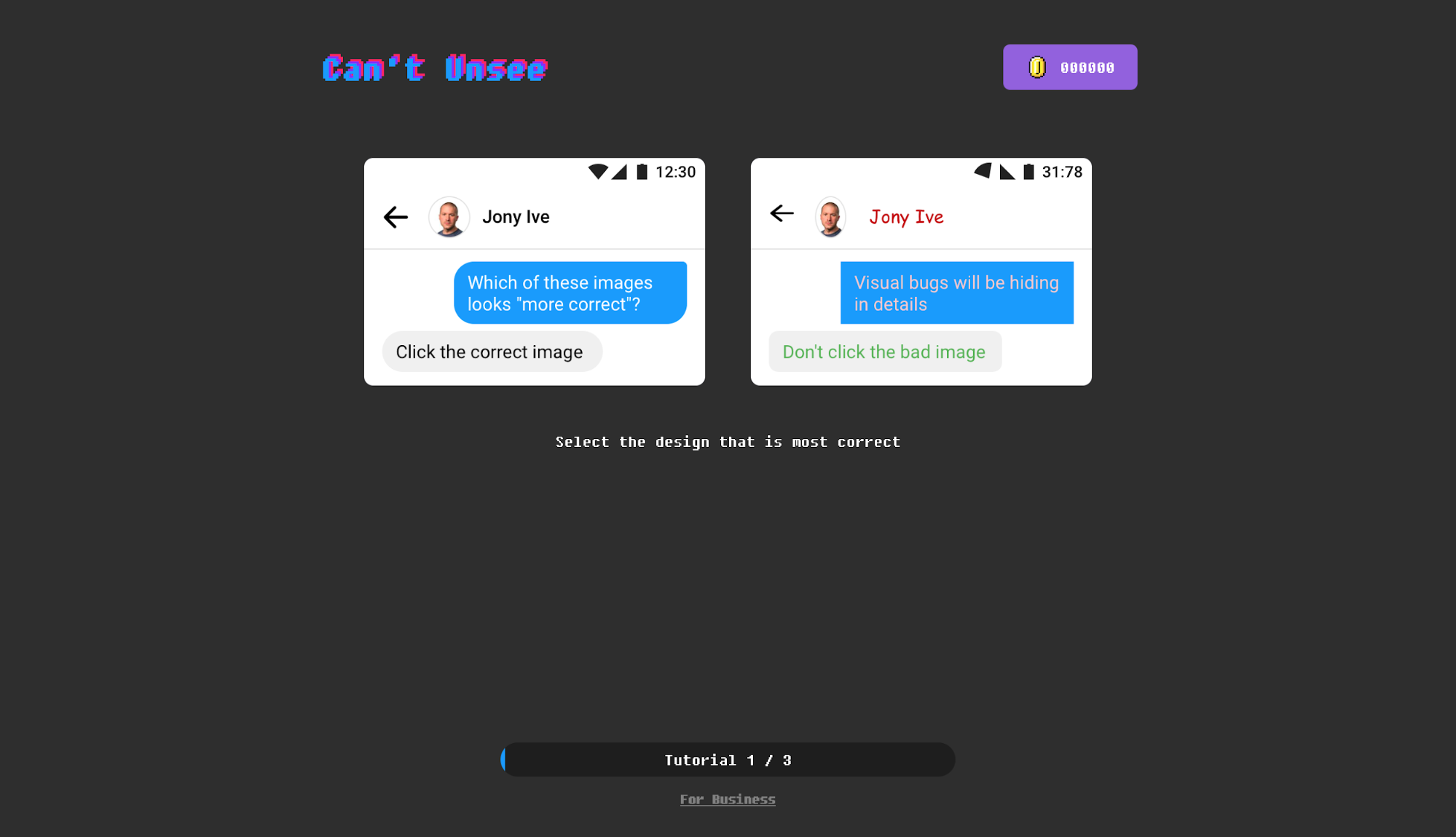 Can’t unsee is a game where you need to pick the right design. To test how much you give attention to the details!