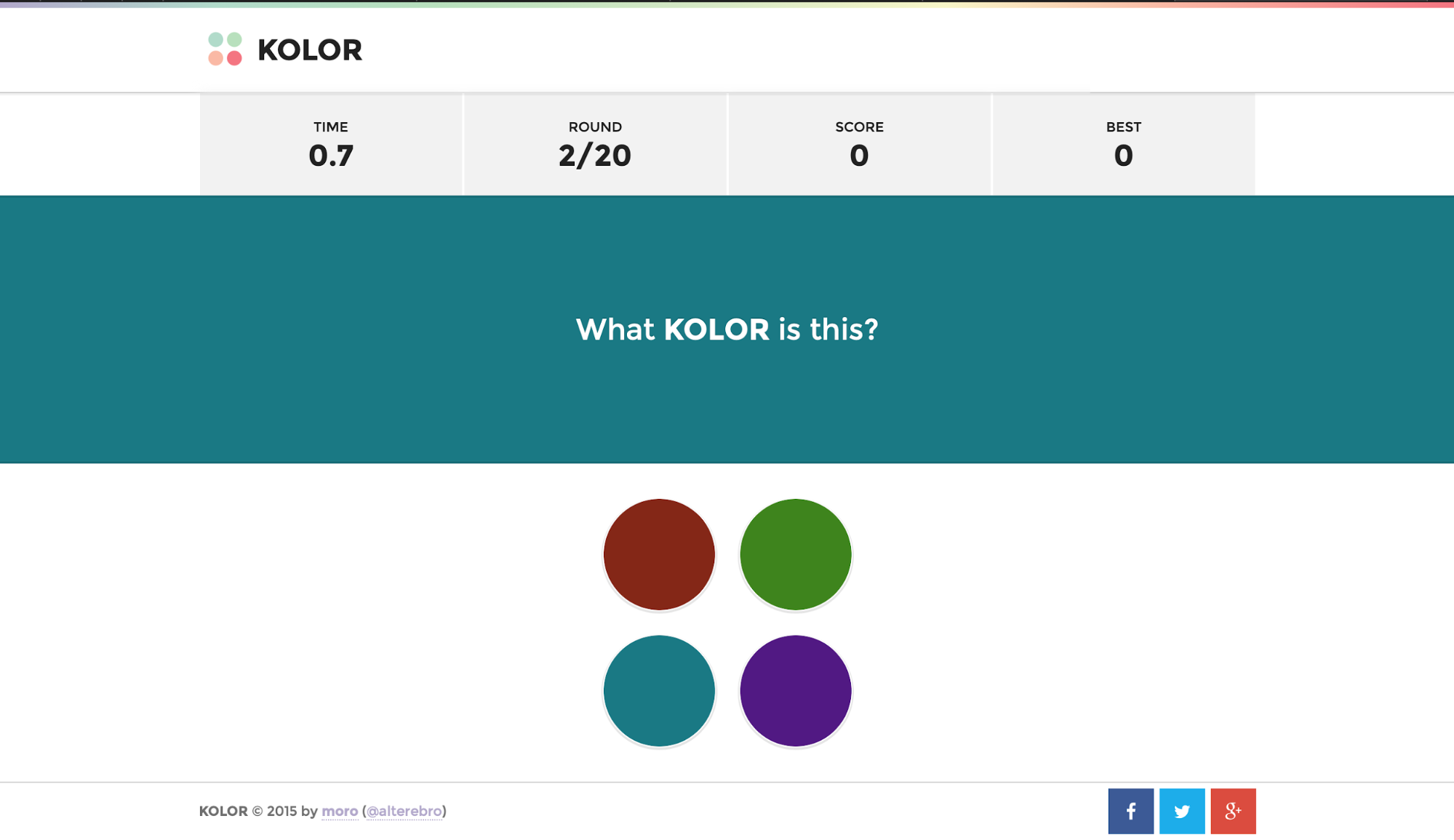 Kolor is a color guessing game. You should be as fast as possible to score high. You can explore and discover different colors in this game.