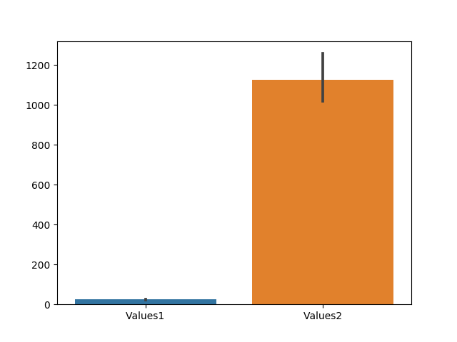 The difference in the range of values is quite obvious. So, I was to plot this directly without any normalization, the graph would look something like this.