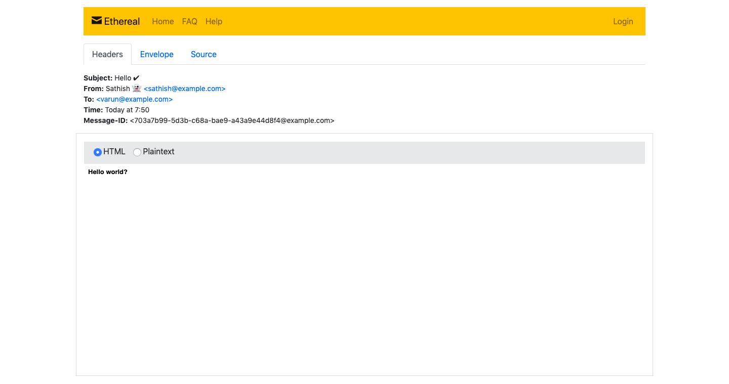 Let’s test out if the Mail part works. We have used an ethereal username and password which will not send out an actual email but yet mimics it. We’ll be getting a link on how the mail will look.