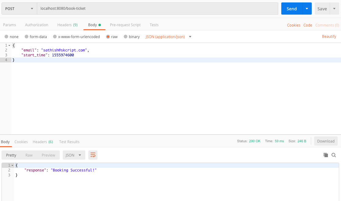 We’ll be writing an endpoint to schedule the background process/job and a worker that’ll process it. For our requirement, it will be sending an email. Let’s assume that a user is booking a ticket for a movie. He/she should be notified twice i.e. When the booking is confirmed (at the time of booking) and 10 minutes before booking.