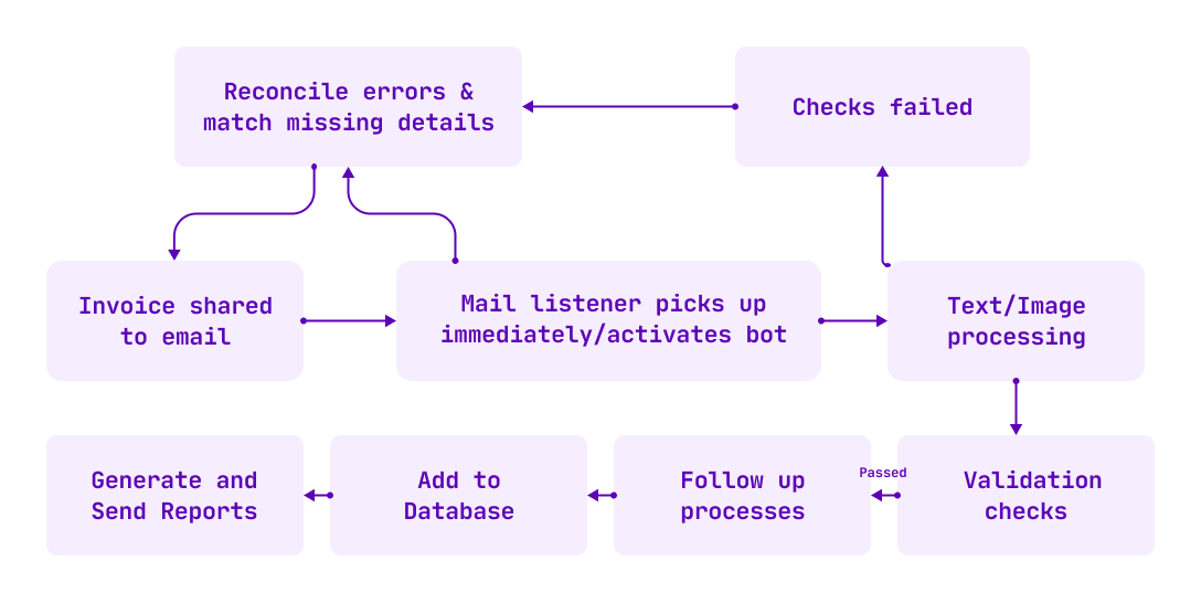 There are always exception scenarios. When a particular invoice doesn’t fulfil the requirements or when they need to be categorized according to month/department/type etc. The bot can be configured to handle these effectively and even send reports and alerts at regular intervals.