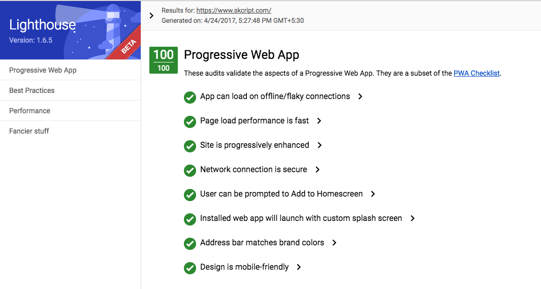 After you’ve completed everything and added a working and cacheable service worker file to your web app you can measure the difference in speed that it has given. You can see our site’s Service Worker file here. Now let’s see what difference in speed our site has after implementing service workers -