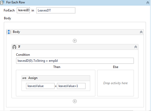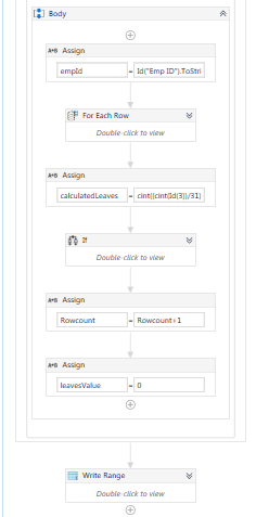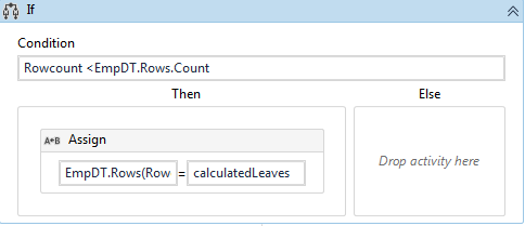 Then in the block of the IF activity we write the calculatedLeaves to the dedicated column.