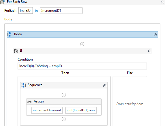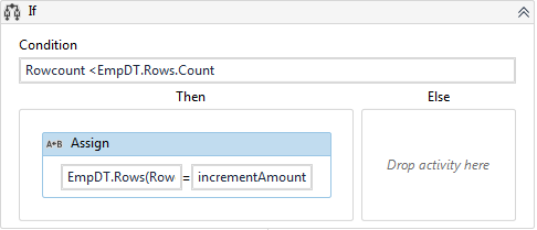 Then in the block of the IF activity we write the incrementAmount to the dedicated column.
