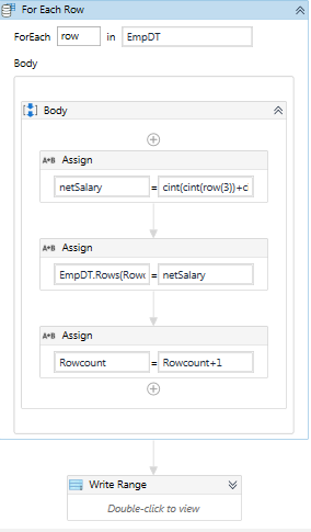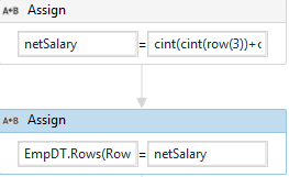 Drag two assign activity and assign it the value of netSalary (here netSalary is variable of int32 type).