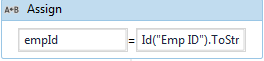 Drag one assign activity and assign the value of empID (here empID is variable of String type)