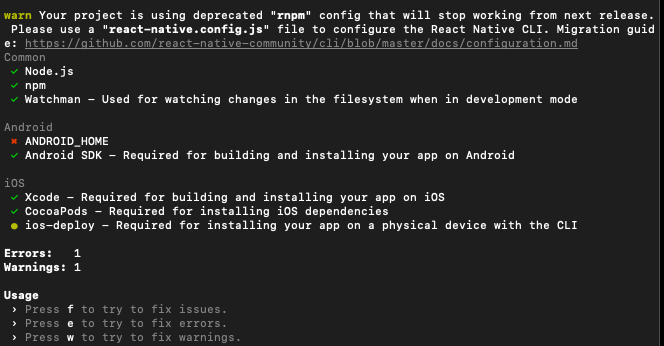 If you are familiar with Flutter, where the command “flutter doctor” is used to set up the local environment for both iOS and Android - then you would know about the command “doctor”. Flutter doctor inspects the tools that are installed on the local machine and tools that need to be configured. If the Flutter doctor is happy, we can start creating a new Flutter app. Here, in React-Native, the command “react-native-doctor” is used for troubleshooting and automatically fixing errors in the development environment.