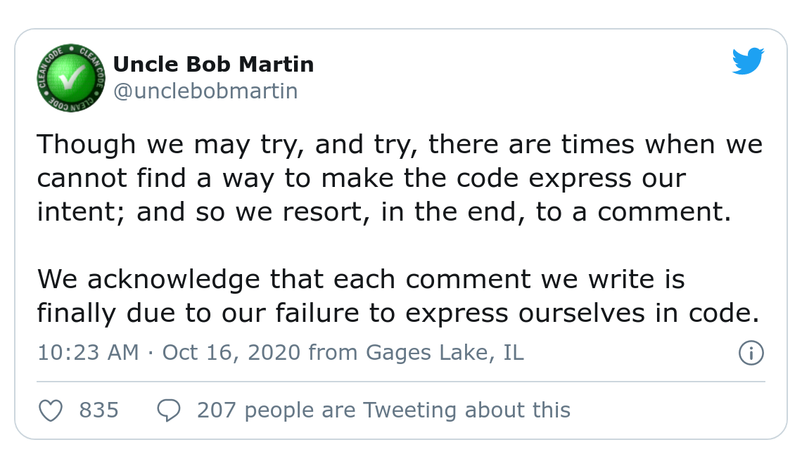 Writing a clean understandable code is not only having multiple lines of comments that explain what (sometimes, the hell) is going on. The code you write should express your intent rather than depending on comments. In most cases, extensive comments are not required if your code is expressive enough.