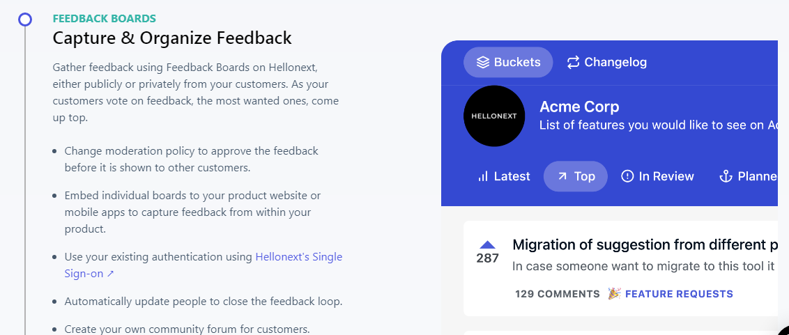 The major benefit is that you don’t have to answer a customer right away if you’re building it or not. You can keep saying: I think it’s a better idea. Let’s track it in the feedback boards and look at how other customers are excited about it.