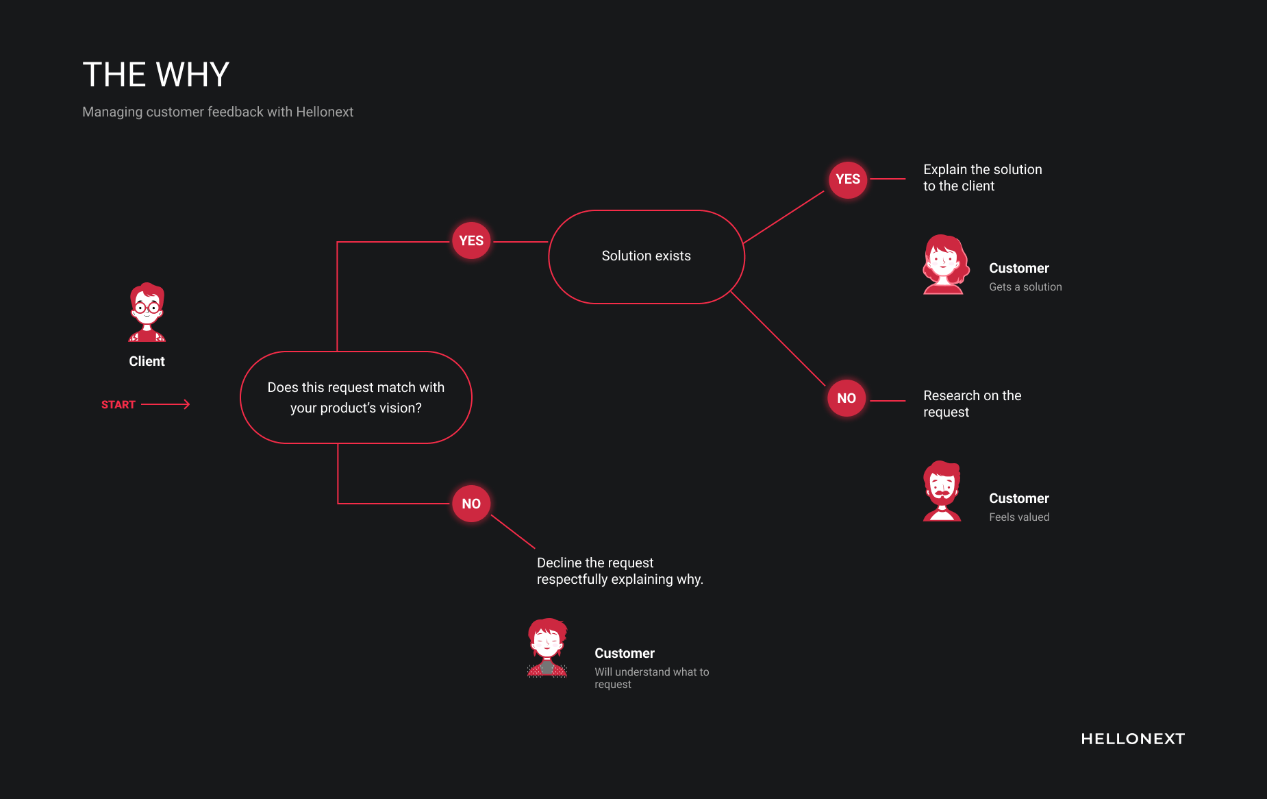 The most crucial thing with feedback? The ‘WHY’. We do often fail to remember that there’s always a reason why a customer requests a certain feature. Mostly it will be like always finding a solution to a “problem” or “need” from the user.