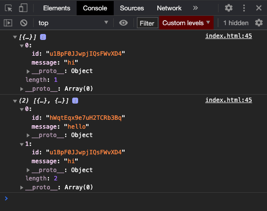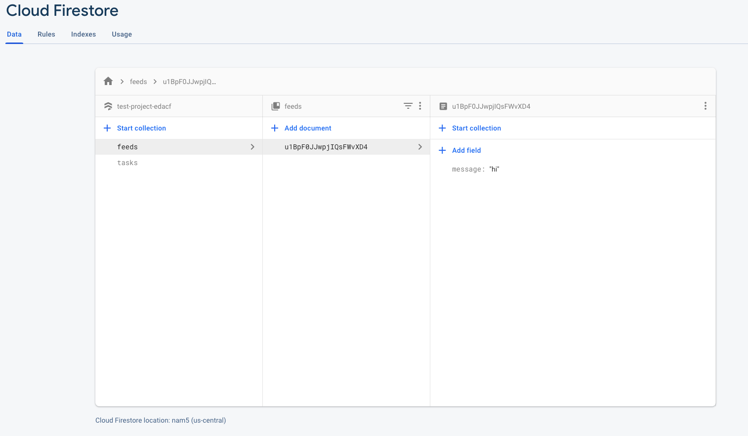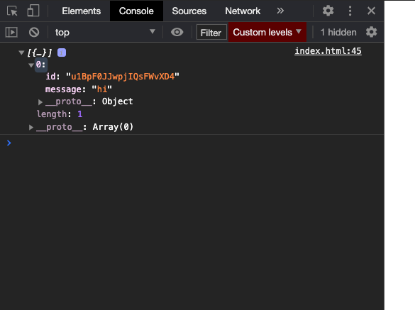 And there you go, we have our first message loaded in the log. Now let’s try updating our collection using the Firestore Console and see if it triggers on the client side without refreshing the client.