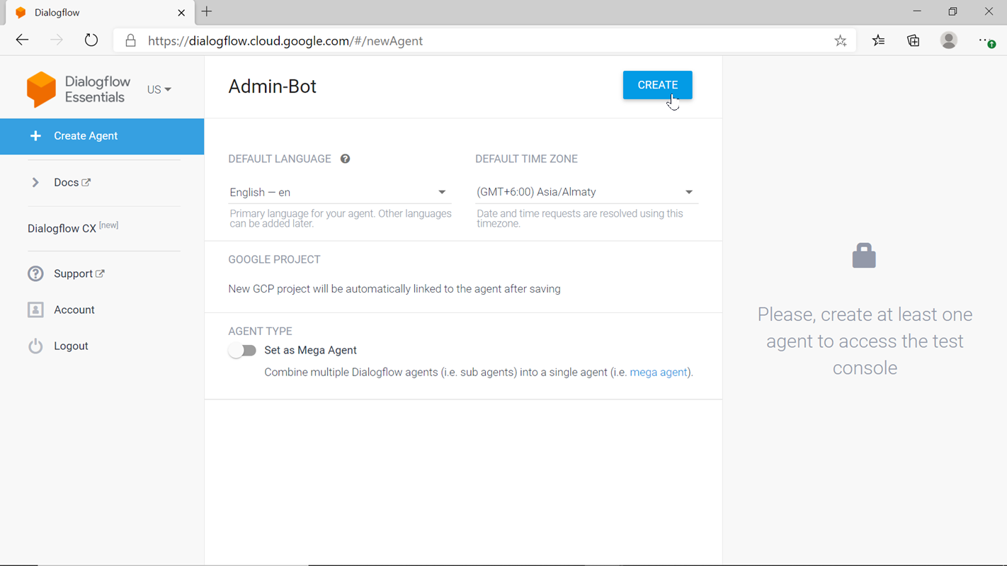 Dialog Flow is the primary tool where I started to develop my chatbot. Here the following steps for creating your chatbot: