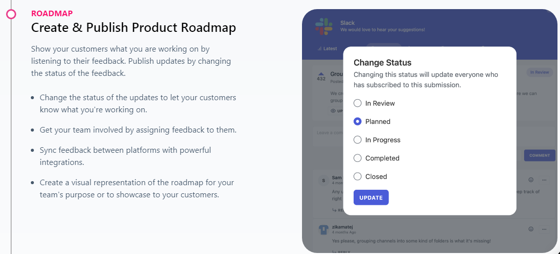 We also utilize our roadmap feature to update our progress on requested features and fixes.