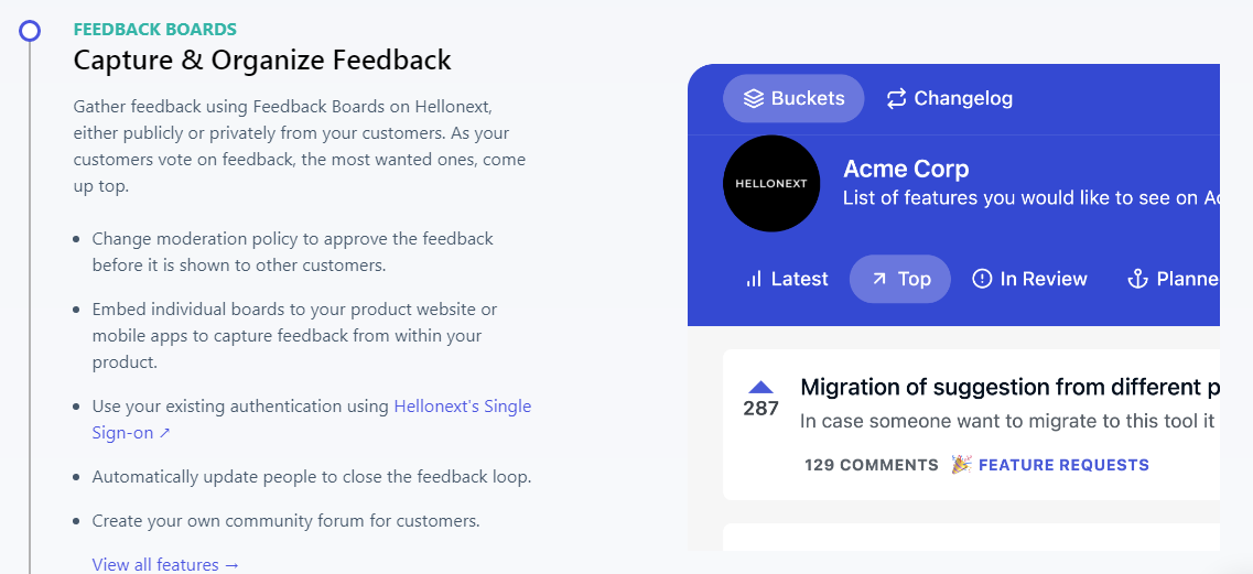 We use Hellonext to collaborate with Hellonext users and organize their feedback. We have our own “Hellonext feedback board” where customers can tell us what’s working, what isn’t, and what they’d like to build next.
