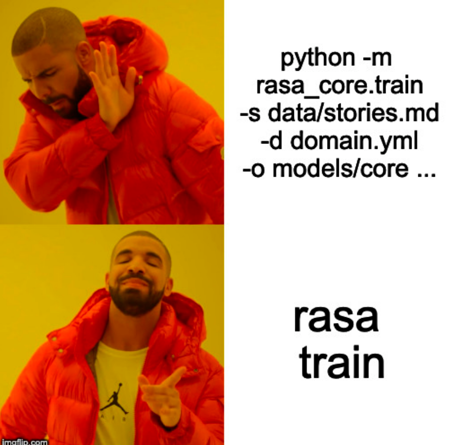 Two different commands to train the NLU and Core, one more command to run the actions server and the Rasa stack did not feel anything like a stack but a bunch of python packages that had different ways to be used and wouldn’t be compatible with the other. The simple task of starting Rasa servers was a Himalayan task.